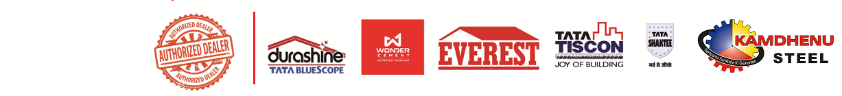 We have a wide stocks of following brands: TATA STEEL, KAMDHENU STEEL, JINDAL STEEL, EVEREST(AC SHEETS), TATA SHAKTEE (GC SHEETS), APPOLO STRUCTURE, DURASHINE COLOUR SHEETS, WONDER CEMENT ETC.